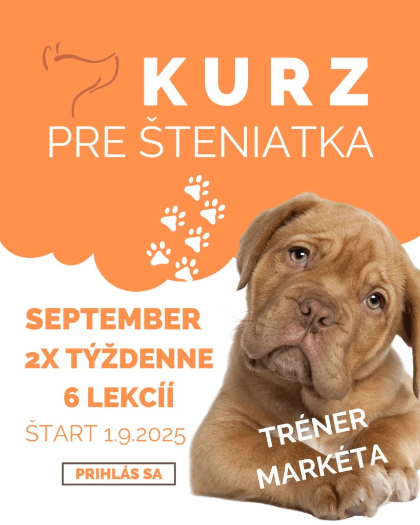 Nezabúdáme na naše najmenšie, ktorý potrebujú najviac pozornosti a péče pre správný štart do života. Takže ak plánuješ šteniatko, zační hned ako ho donesieš domou. Kurz je pre šteniatka od 8 týždnov do 7 mesiacov. S platným očkováním proti parvovirozé a leptospiróze. Príhlásiť sa môžte TU